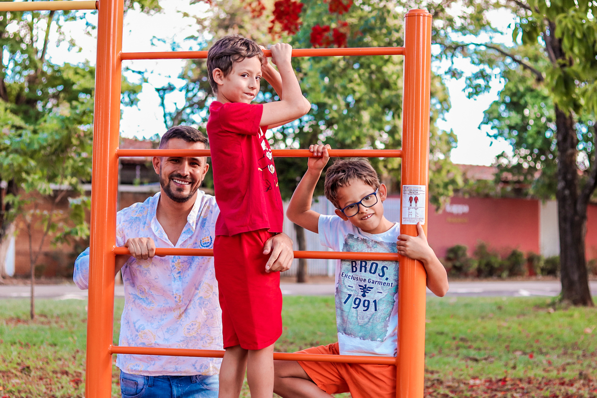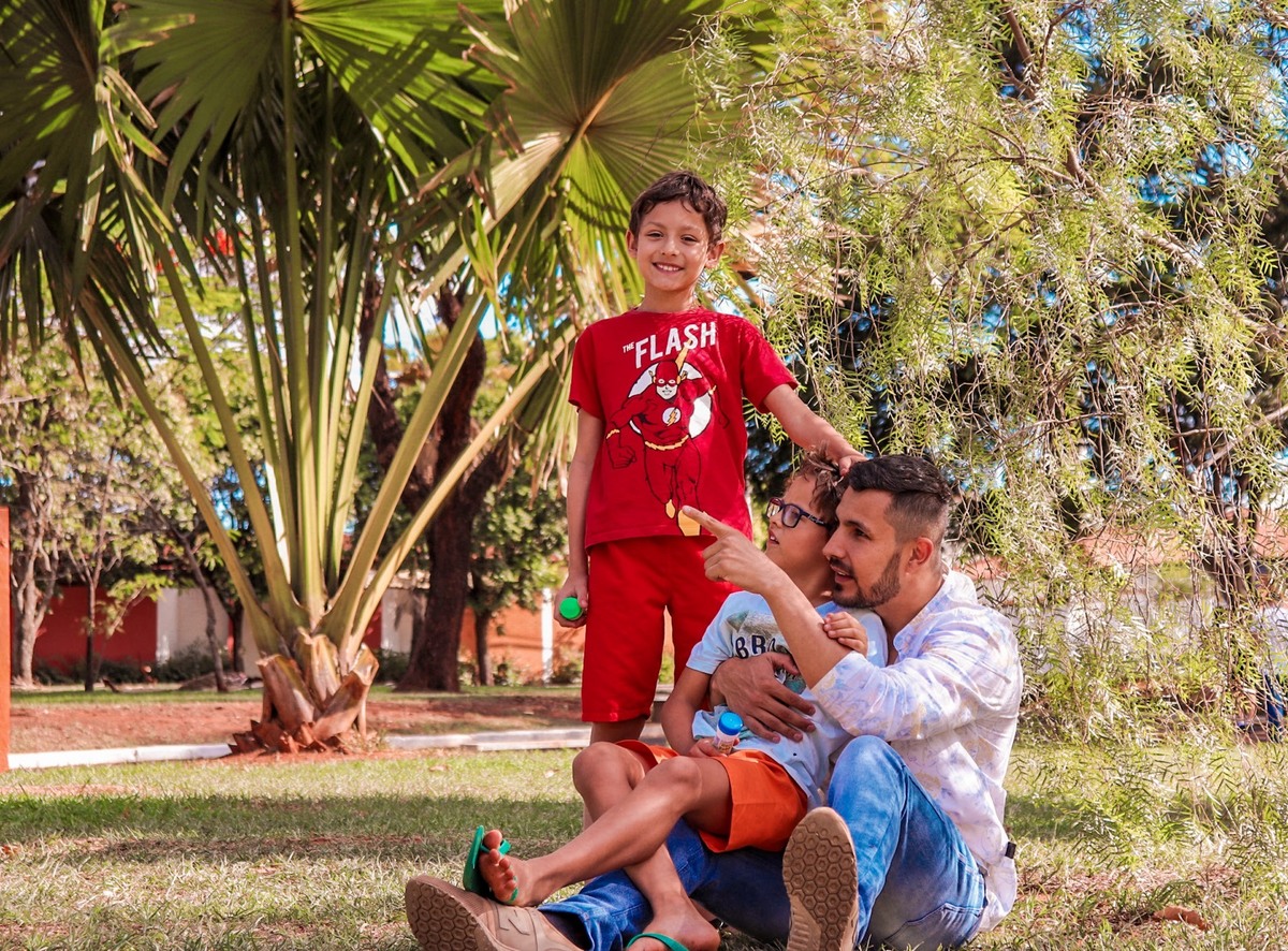 Está aqui é a minha família, meu esposo Thiago e seus filhos Dudu e Davi.